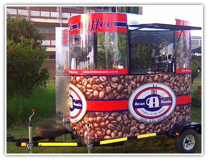 Our mobile coffee units stand out from any other available trailers. They are built of strong and durable, but lightweight fibreglass, and have a very appealing appearance. The transparent portion allows you to watch your coffee being made – after all, pouring the perfect cappuccino is an art well worth watching.